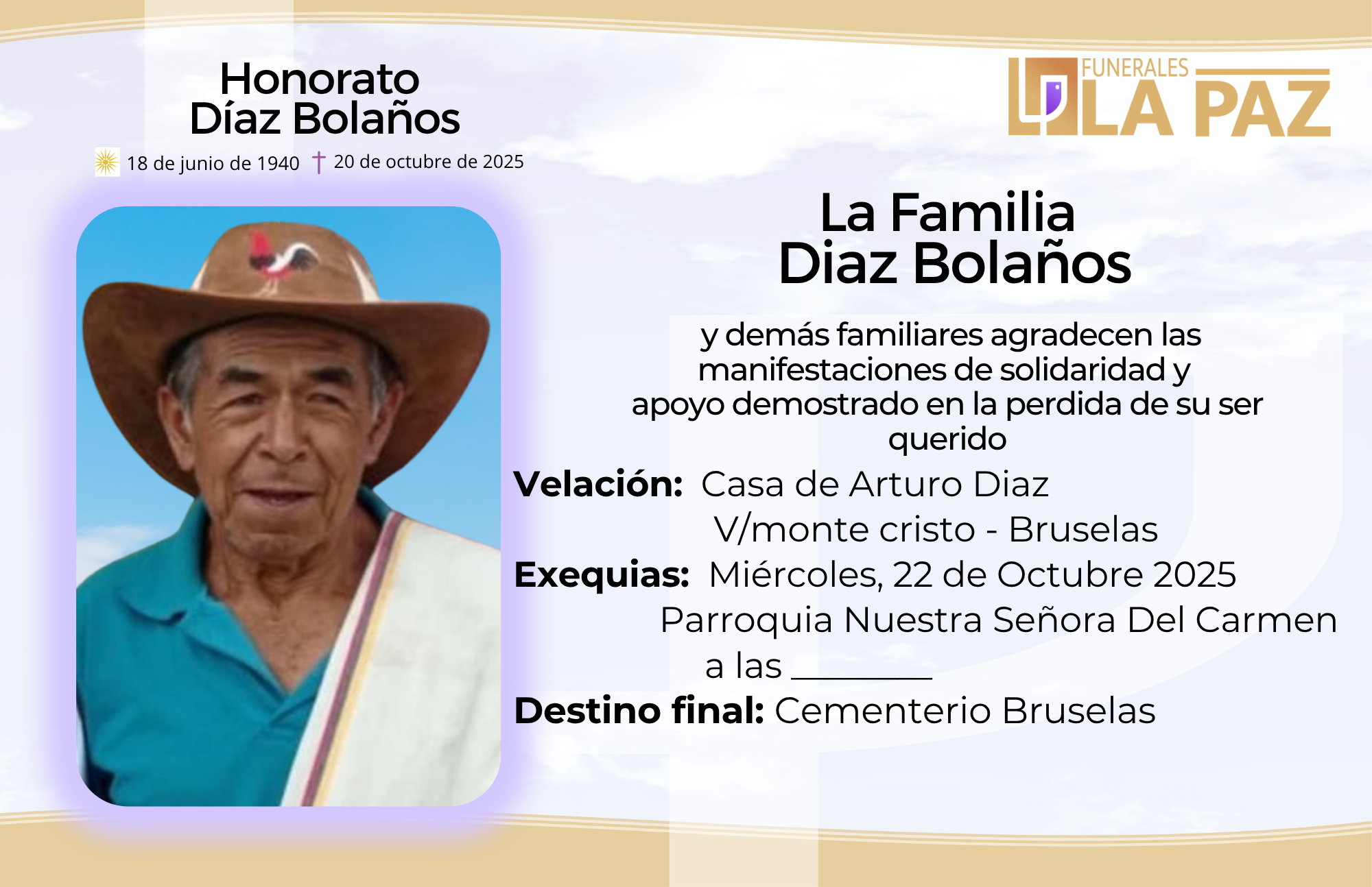 Funerales la Paz se solidariza y se une en oración con la familia Díaz Bolaños, comunidad en general y amigos en la partida del Sr. Honorato Díaz Bolaños.