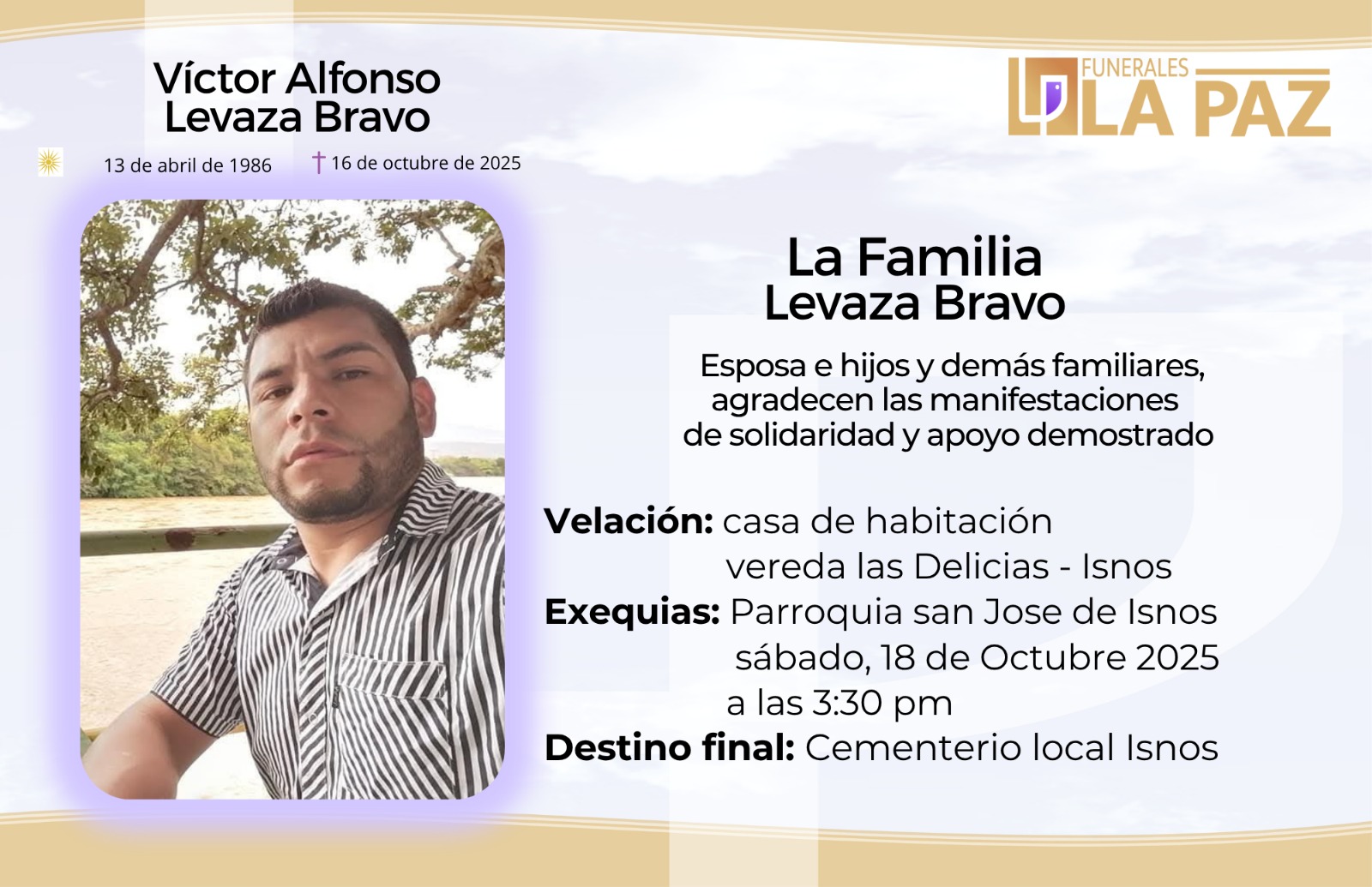 Funerales la Paz se solidariza y se une en oración con la familia Levaza Bravo, comunidad en general y amigos en la partida de Victor Alfonso Lebaza Bravo.