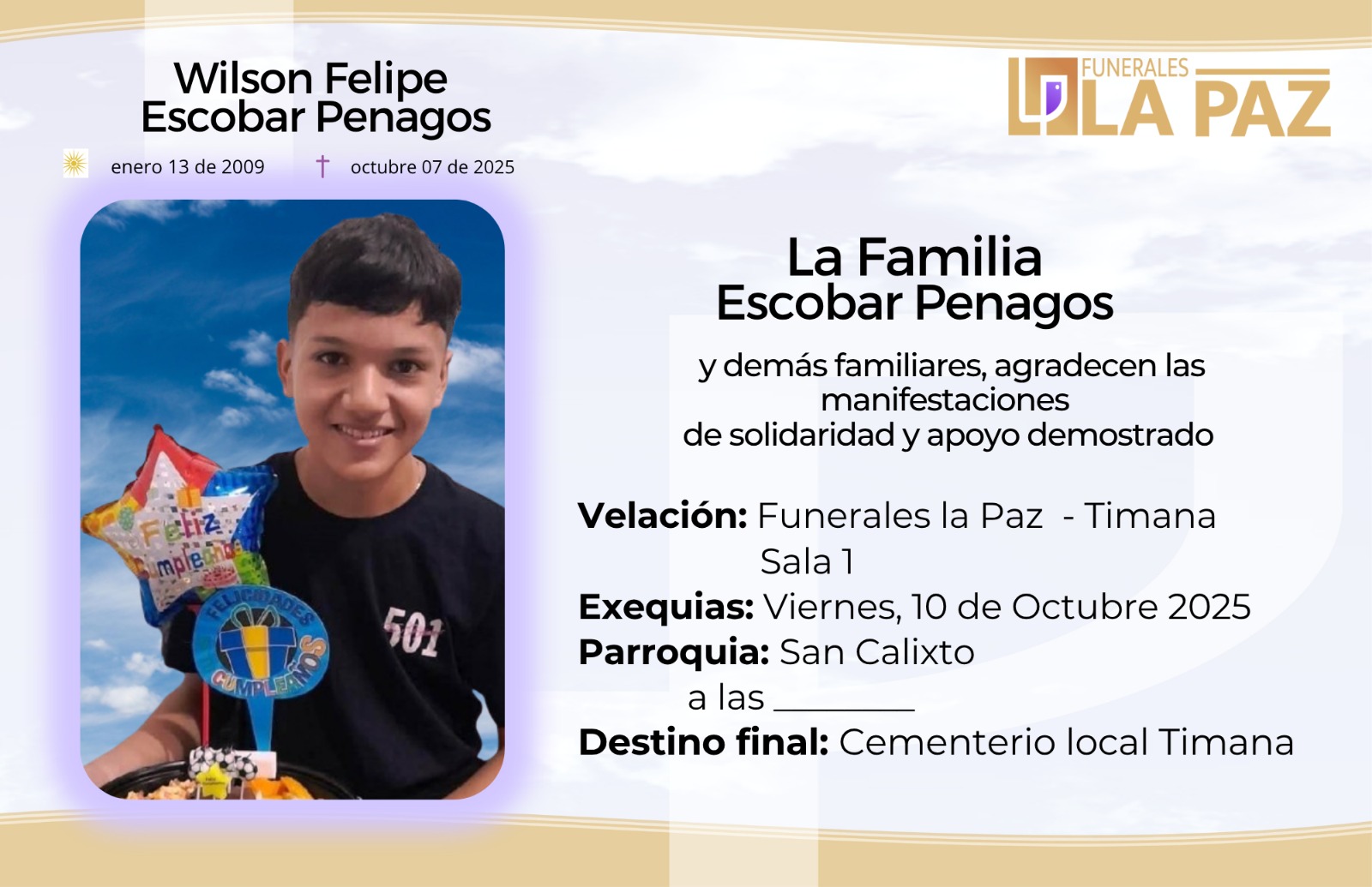 Funerales la Paz se solidariza y se une en oración con la familia Escobar Penagos, comunidad en general y amigos en la partida de Wilson Felipe Escobar Penagos.